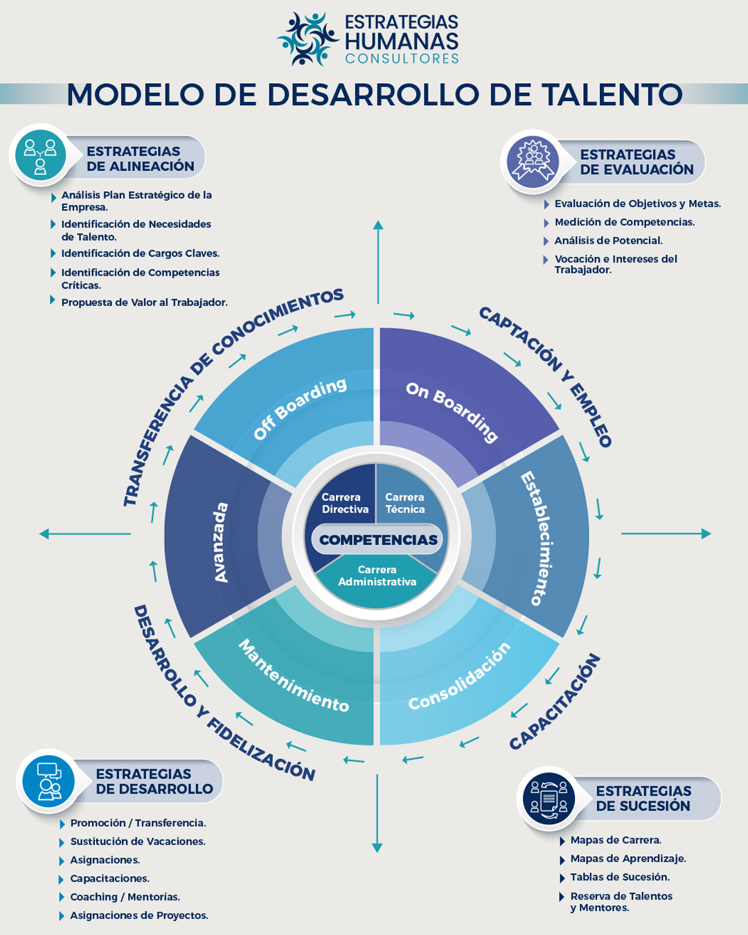 El Modelo de Desarrollo de Talento que planteamos desde Estrategias Humanas: Los 4 pilares para desarrollar verdaderos gerentes de carrera.